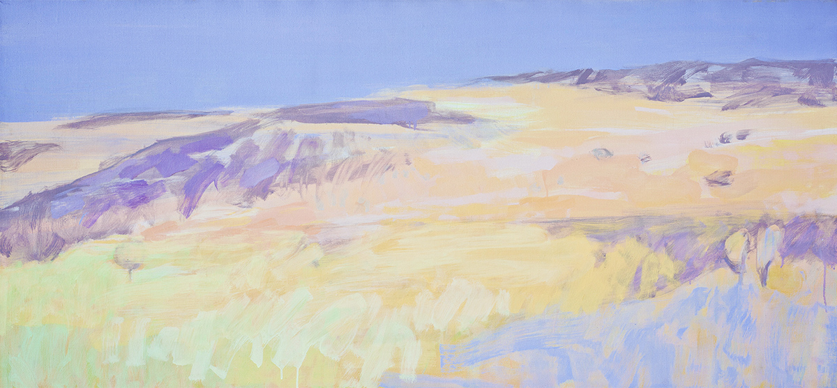 Meine Arbeiten, meine Landschaften, sind keine draußen erlebte, vom Wind und Wetter verursachte Impressionnen, sondern kontemplative Konstruktionen ideeler Orte einer stilistischen unverwechselbaren Matrix.